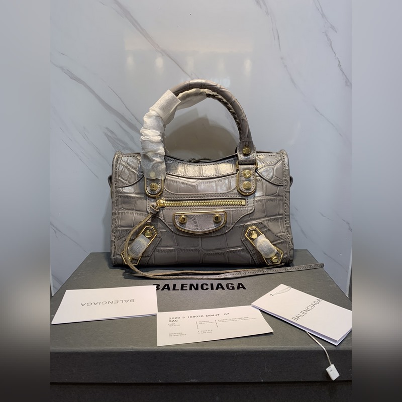 Bolso Balenciaga pequeño gris tipo motocicleta con efecto cocodrilo, réplica BLSJ96181000