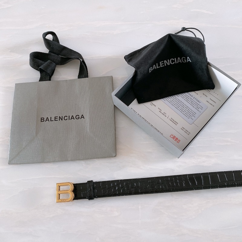 Cinturón Balenciaga BB con hebilla de cobre puro y esfera dorada.
