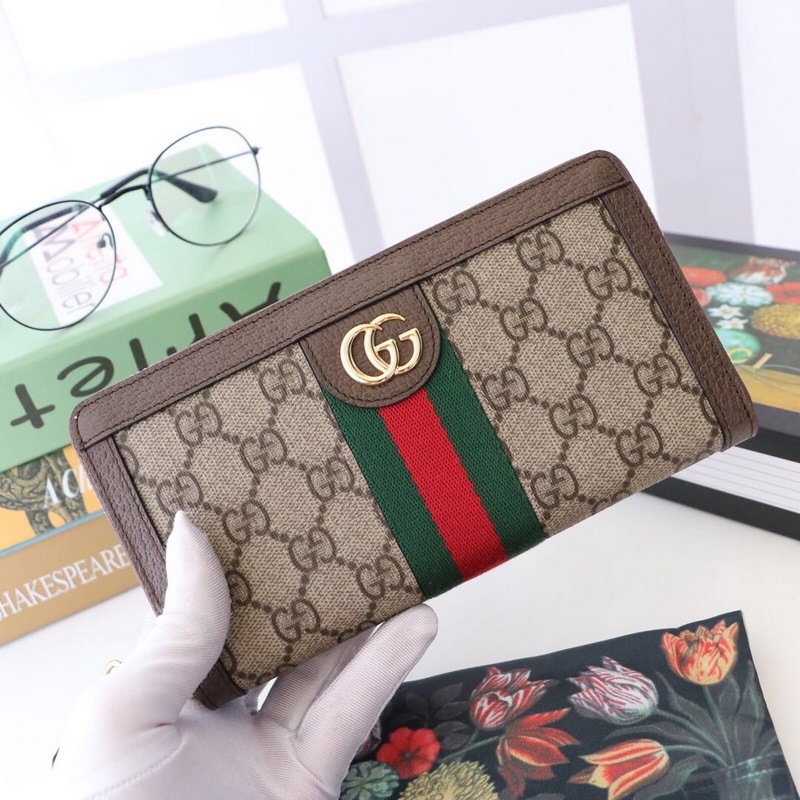 Cartera GUCCI Ophidia 523154 de piel de PVC marrón con cremallera