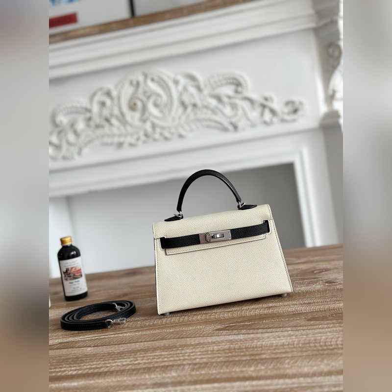 Kelly II Mini Epsom Leather en blanco batido con herrajes plateados