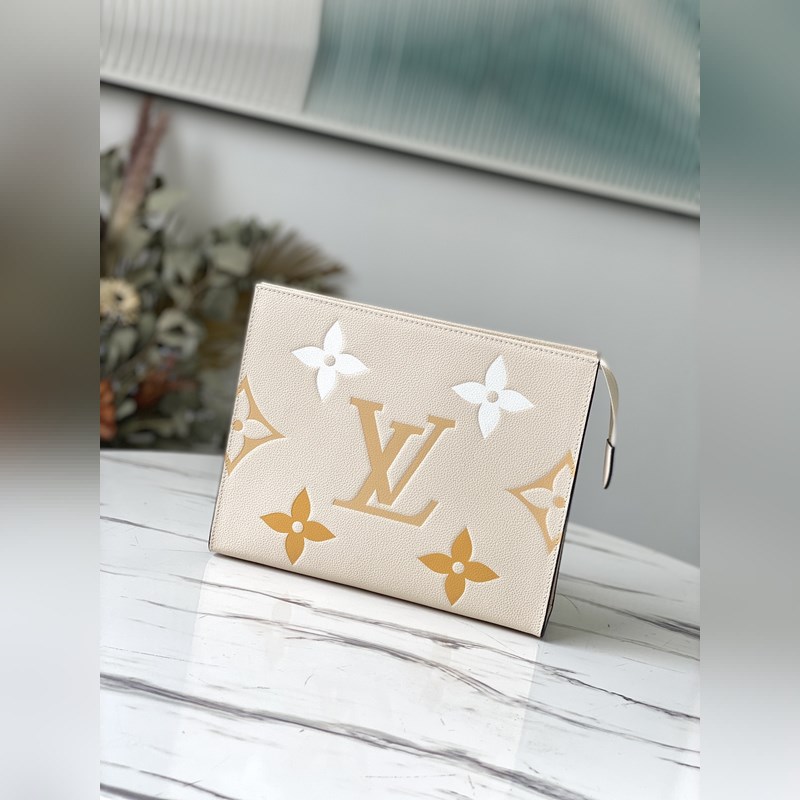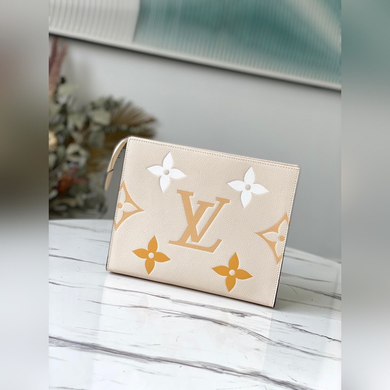 Réplica de bolso cosmético LV M45951 con estampado de seda beige