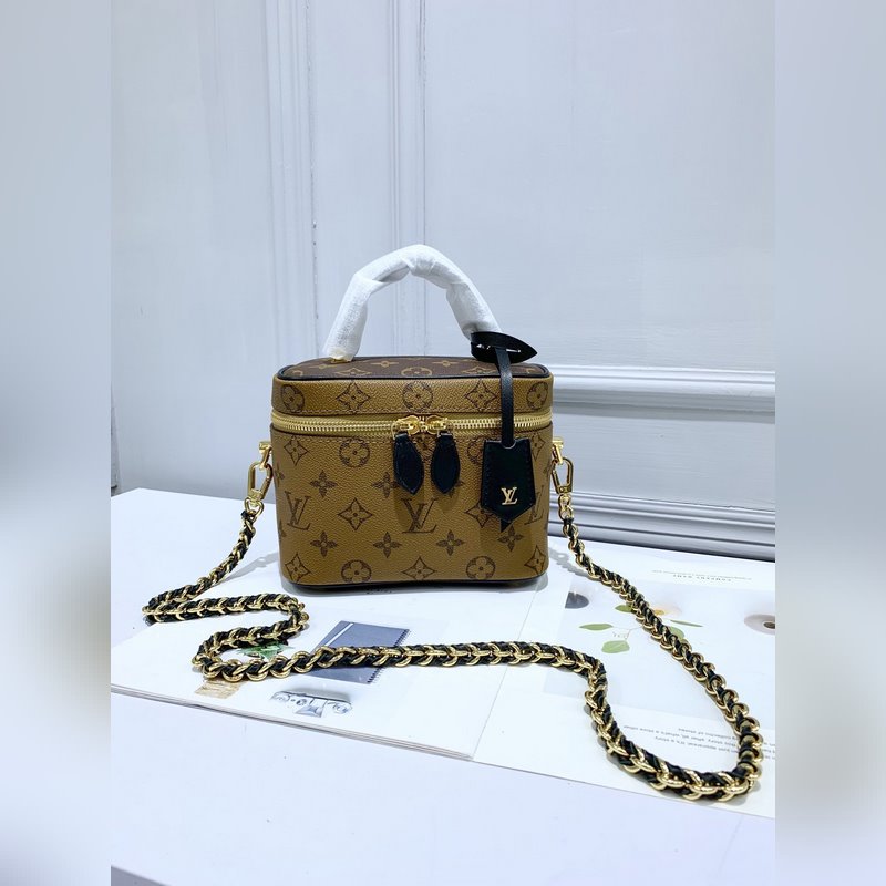 Réplica del bolso de maquillaje redondo de lona Monogram de Louis Vuitton, diseño compacto y de calidad.