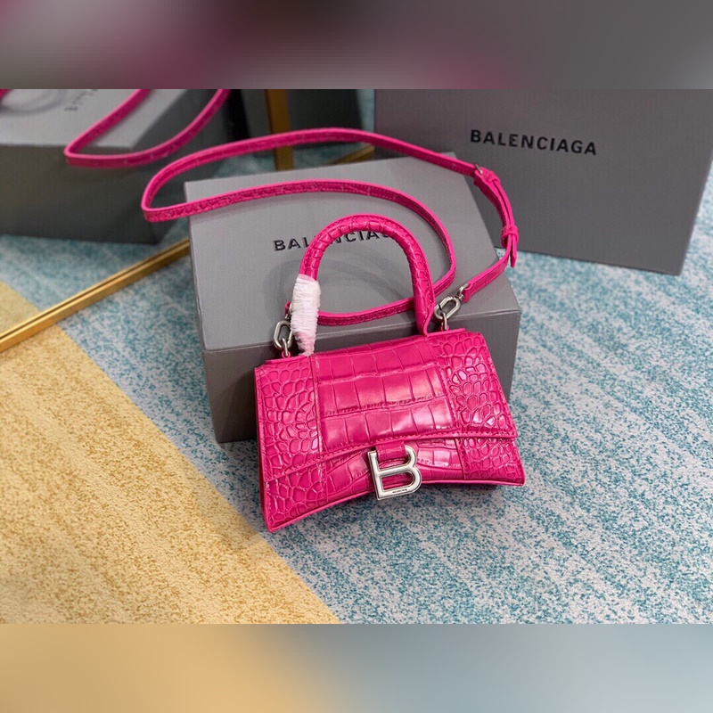 Bolso Balenciaga XS réplica de reloj de arena con relieve de cocodrilo, hecho a mano, de primera calidad.