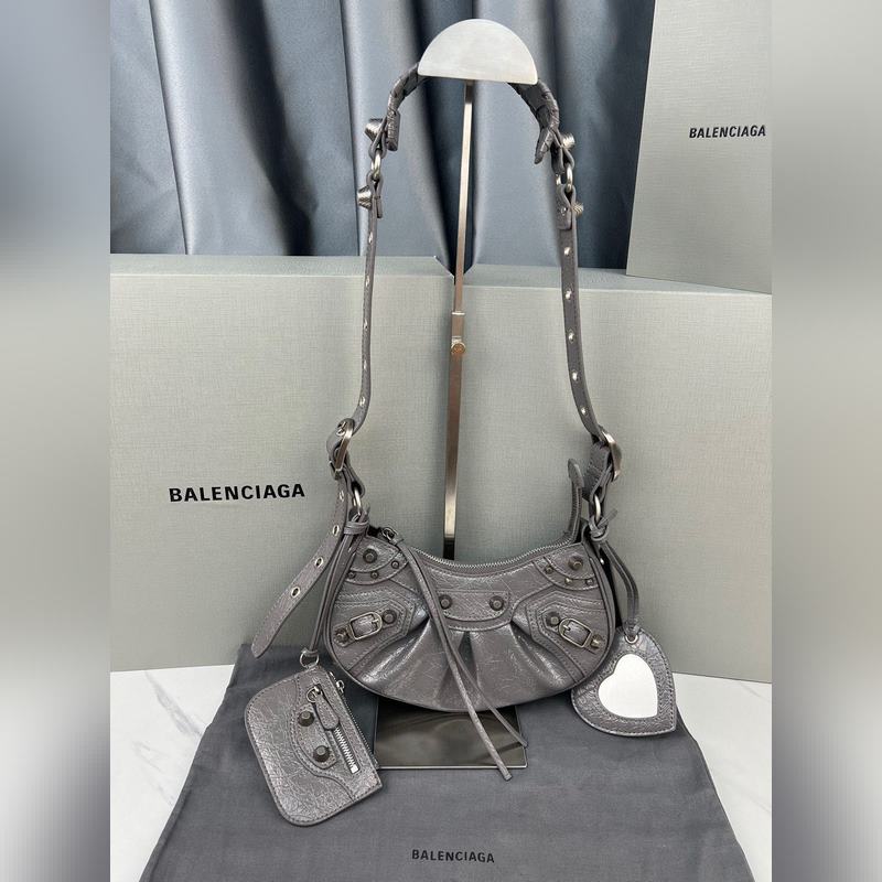 Réplica del bolso de hombro Balenciaga Le Cagole Grey Half-Moon, versión mejorada