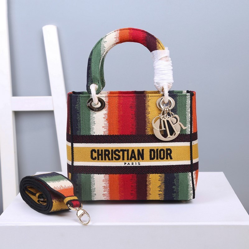 Bolso Dior Lady D-Lite con cinco cuadrículas y rayas arcoíris bordadas