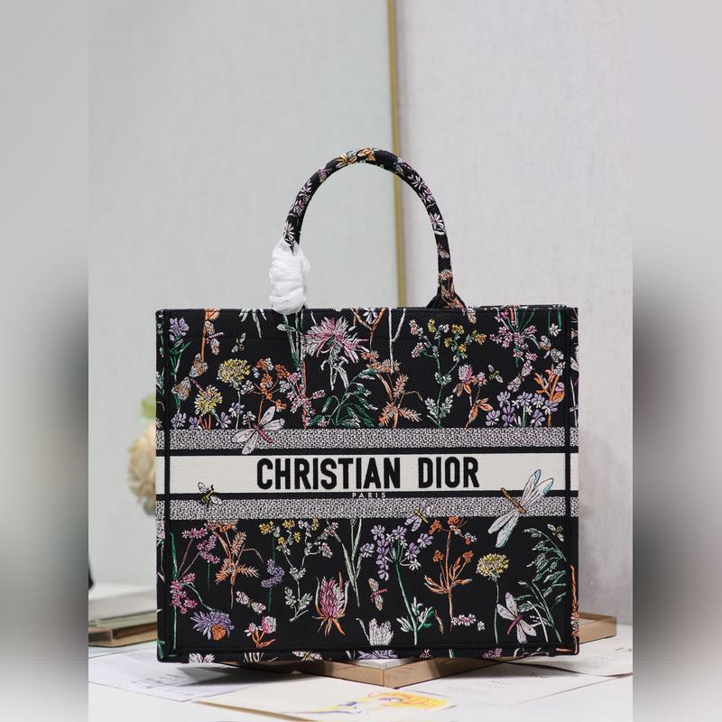 Bolso de compras grande Dior Book Tote de alta calidad, réplica auténtica, edición Black Dragonfly