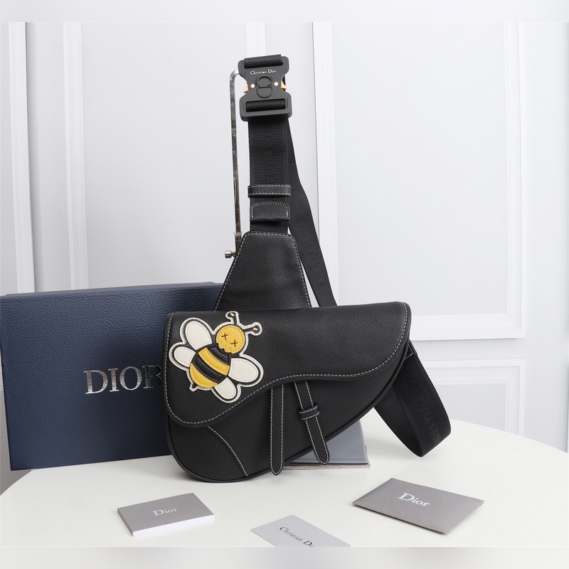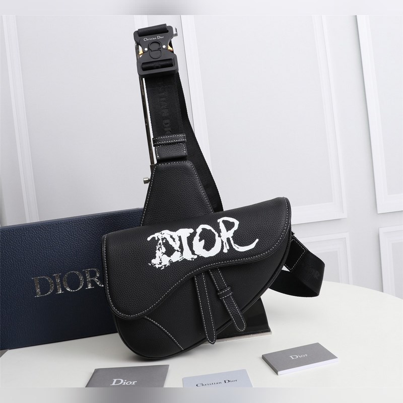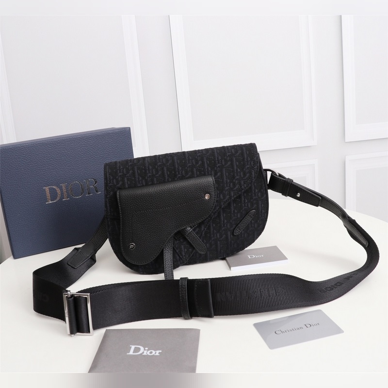 Bolso bandolera Saddle de Dior para hombre, réplica de bolso de pecho, 1ADPO093, piel negra