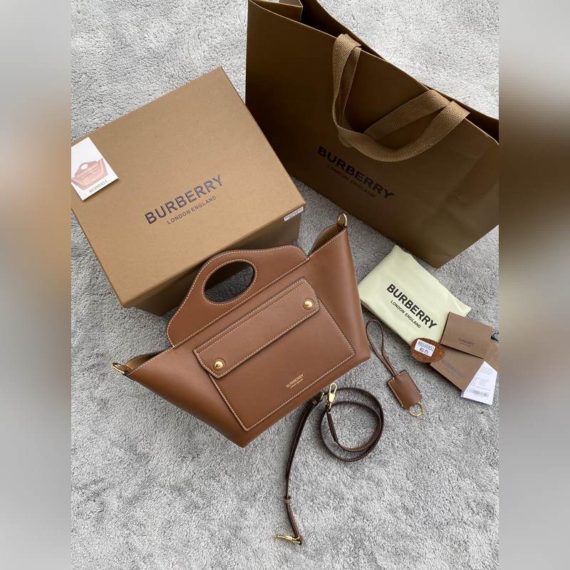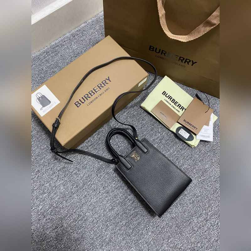 Réplica del mini bolso Burberry Tote en piel granulada con logotipo exclusivo