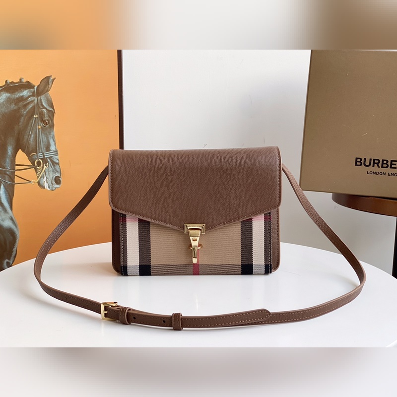 Réplica del elegante bolso bandolera a cuadros Burberry 1813 con ribete de piel