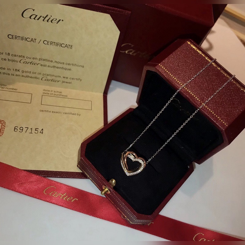 Collar Cartier Corazón Tres Anillos de Oro en Plata 925 con Micropavé de Alta Calidad