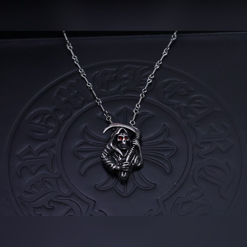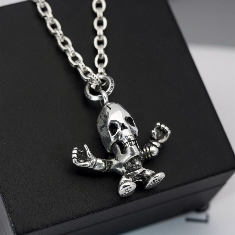 Collar con colgante de calavera CH Krora, estilo punk, unisex, diseño vintage