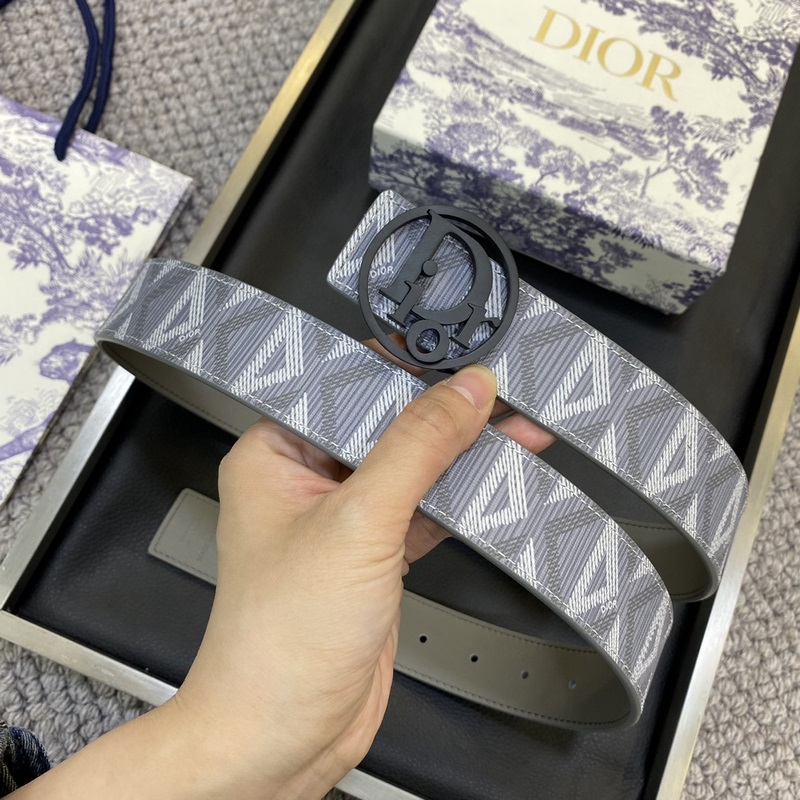 Cinturón DIOR de piel de 3,5 cm de ancho con herrajes de acero y logotipo clásico de tela