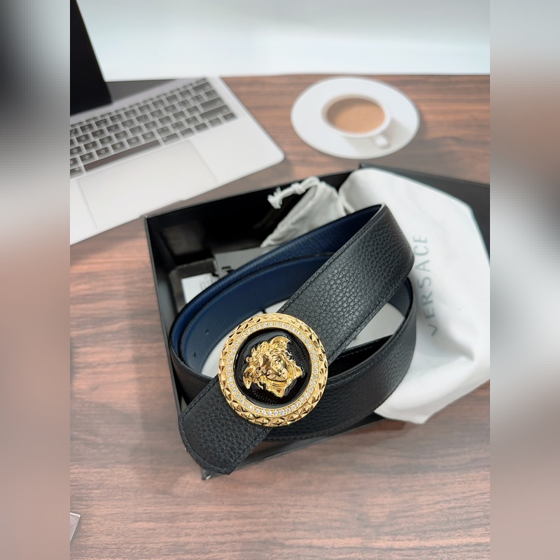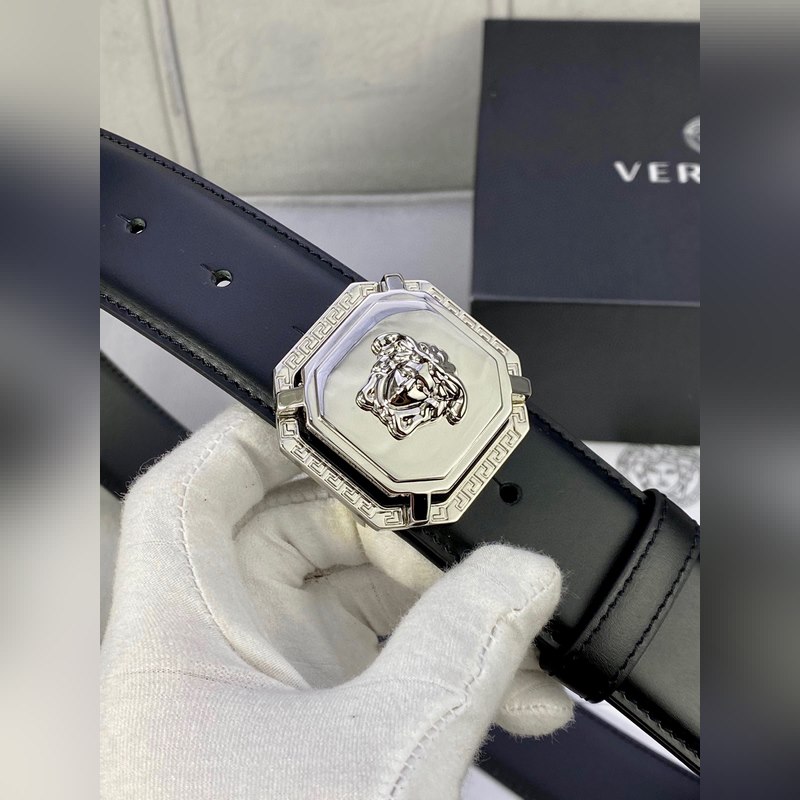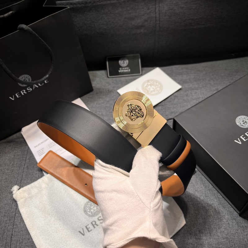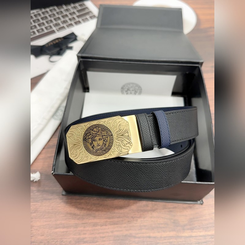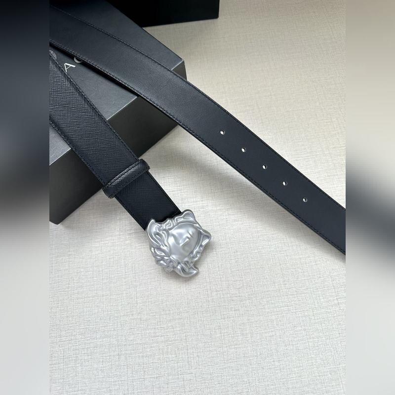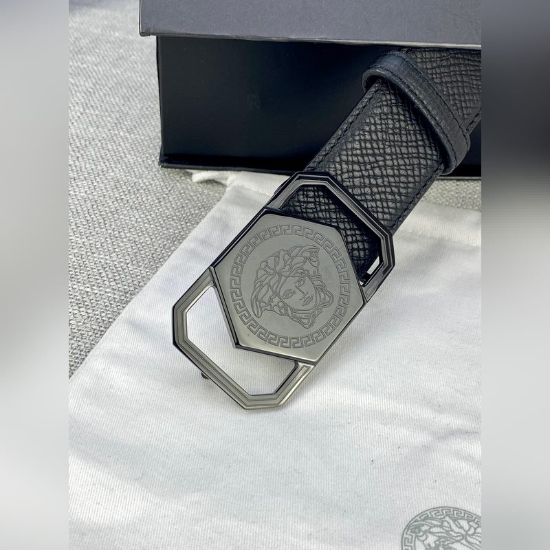 Nuevo cinturón de cuero liso con hebilla de doble cara Medusa Biggie