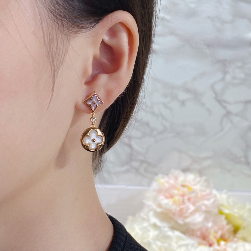 Pendientes de doble flor de alta joyería LV en oro rosa con diamante sobre nácar blanco