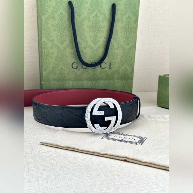 Cinturón reversible con logotipo de doble G de Gucci y hebilla de cuero de primera calidad