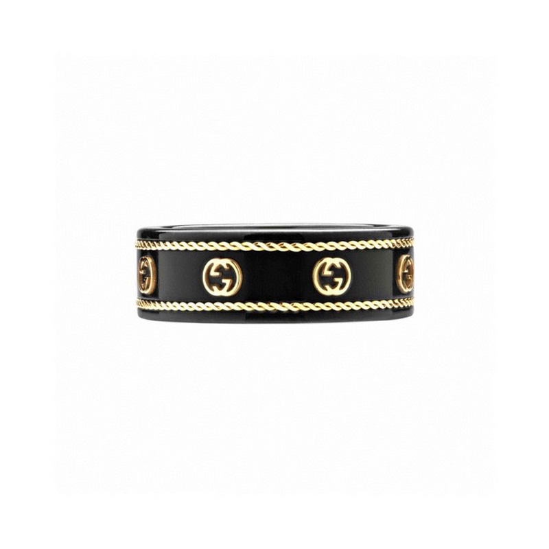 Anillo GUCCI de cerámica blanca y negra con doble G en oro
