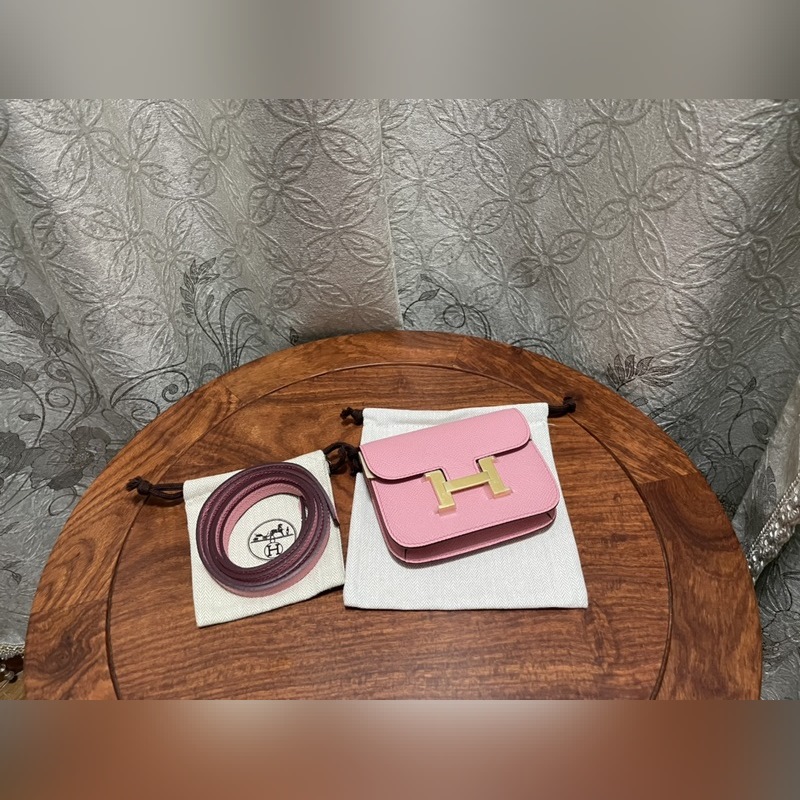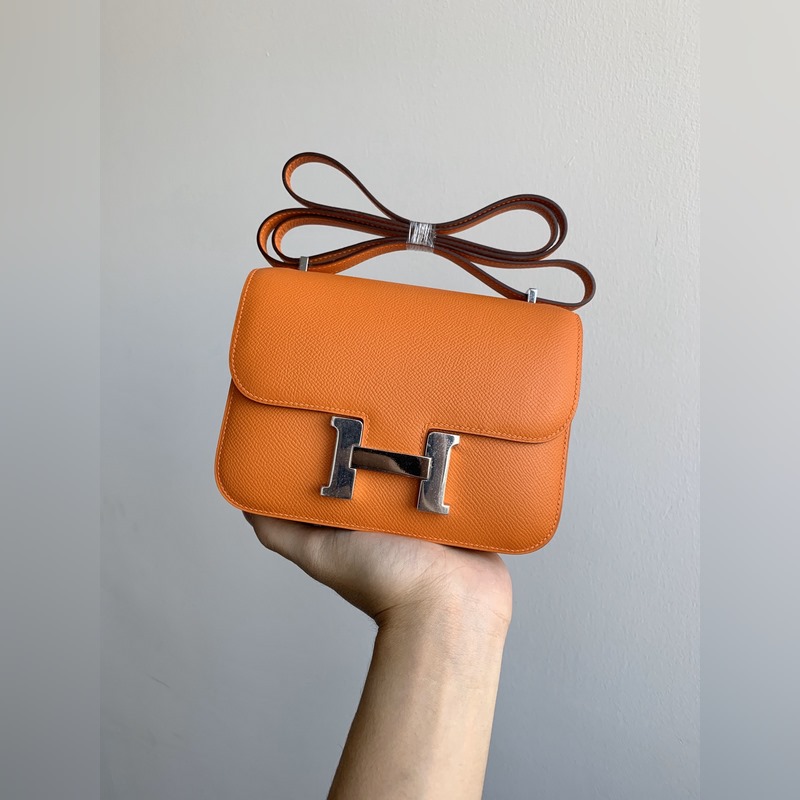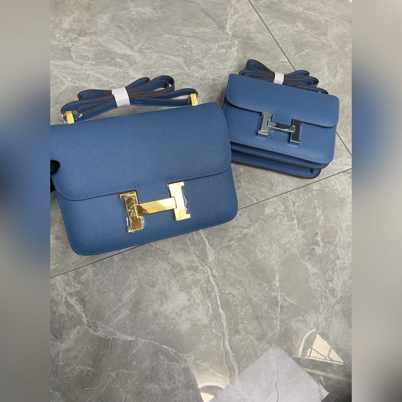 Réplica del bolso Hermès Constance Air Hostess de piel Epsom con hebilla dorada y plateada