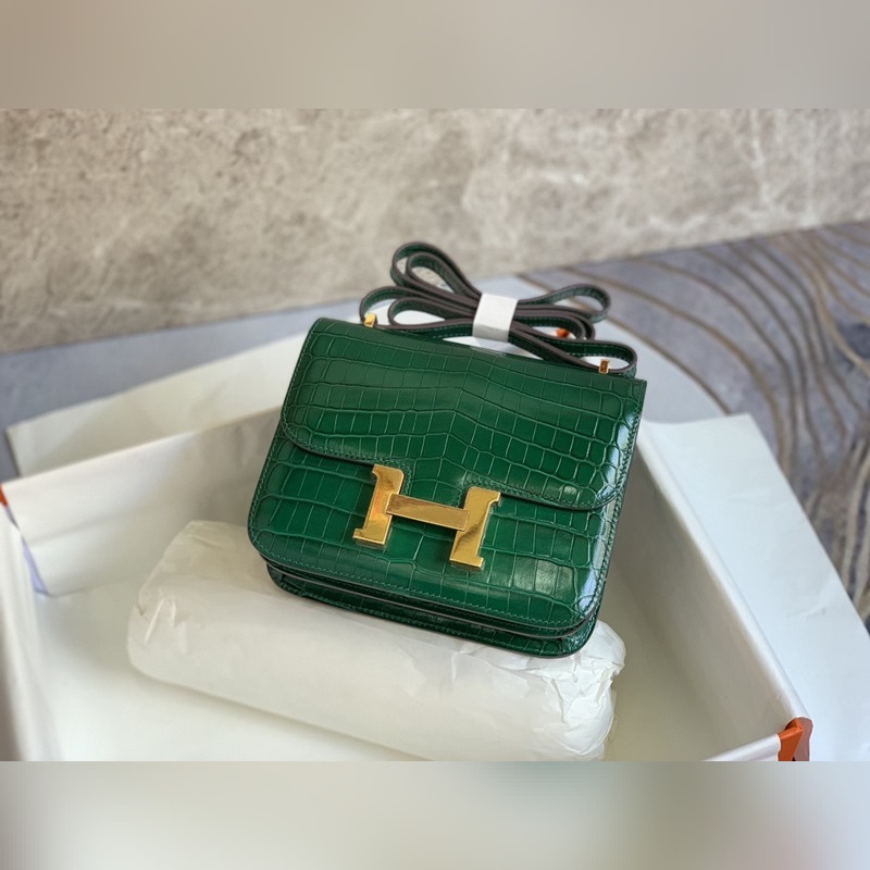 Bolso de hombro Hermès Constance con relieve de cocodrilo