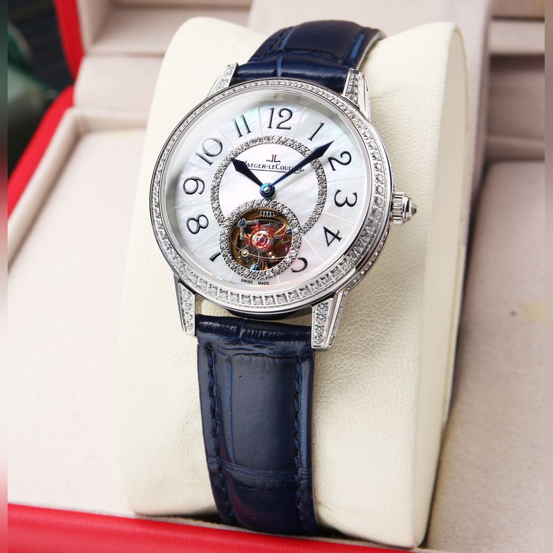Réplica del reloj Jaeger-LeCoultre Rendez-Vous con tourbillon mecánico automático para mujer, con nácar natural de aguas profundas