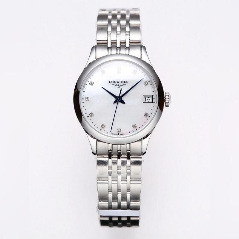 Réplicas de relojes Longines elegantes para mujer, movimiento de cuarzo suizo, esfera de nácar, resistente al agua.