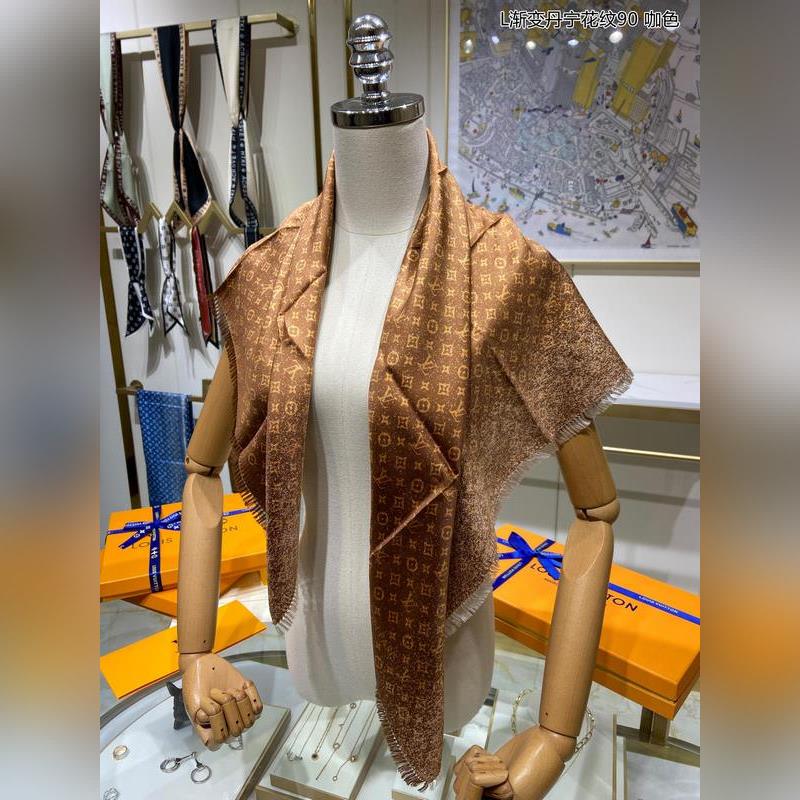 Bufanda de seda LV con degradado de damasco 90, accesorio de calidad