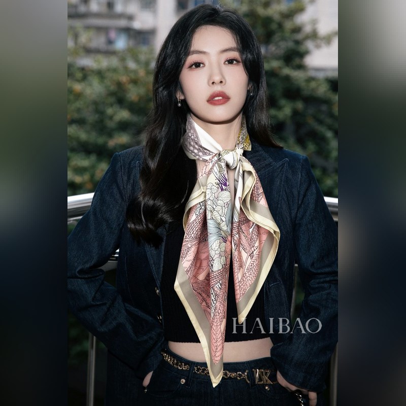 LVM78159 Bufanda de seda con estampado clásico, diseño versátil y vibrante