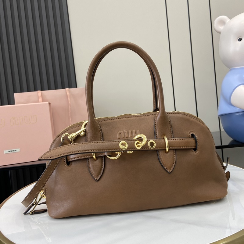 Réplica del bolso Miu Vintage Bowling en suave piel de oveja de primera calidad con detalles metálicos antiguos