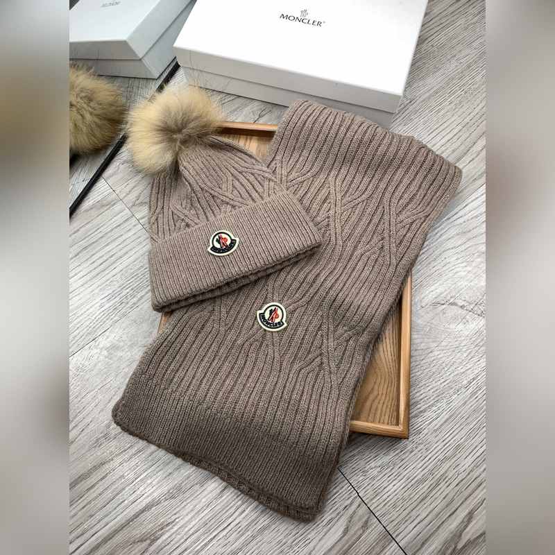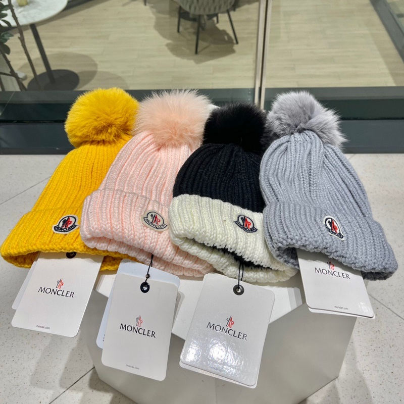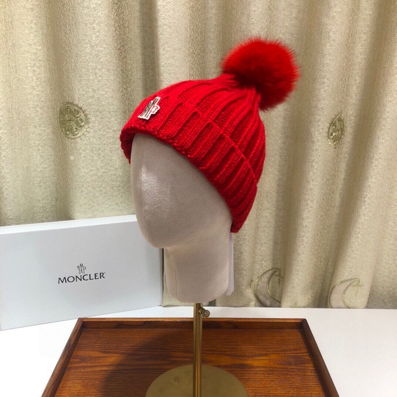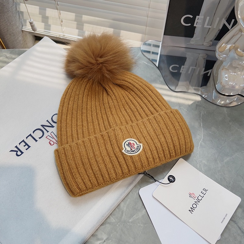 Gorro de mezcla de lana MONCLER con pompón de piel de zorro, elegante y acogedor