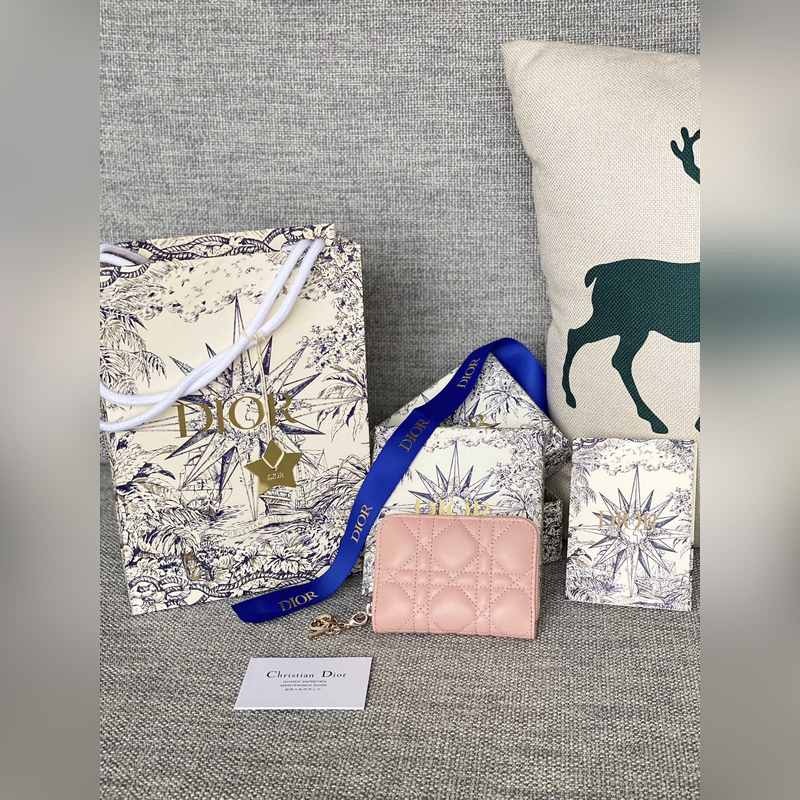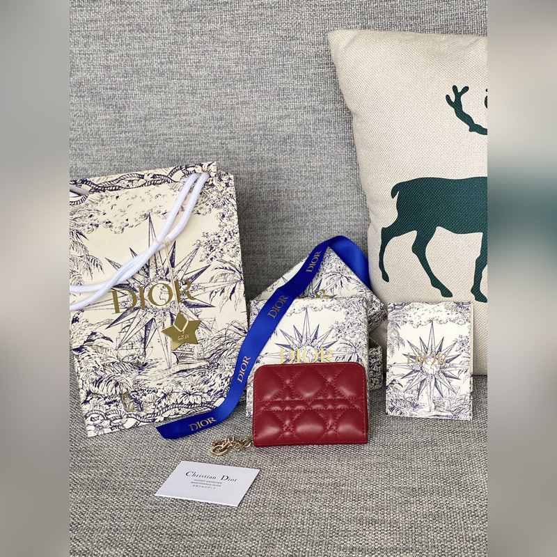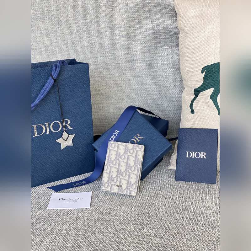 Tarjetero de lona con diseño de diamantes en color gris Dior CD, elegante y práctico.