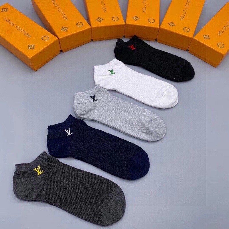 Caja de 5 pares de calcetines cortos de la nueva colección de Louis Vuitton, edición de calidad