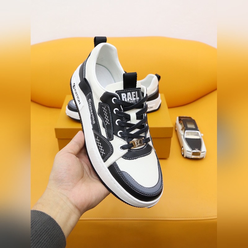 Zapatos deportivos casuales clásicos LV Louis Vuitton de cuero con estampado de marca cómodos