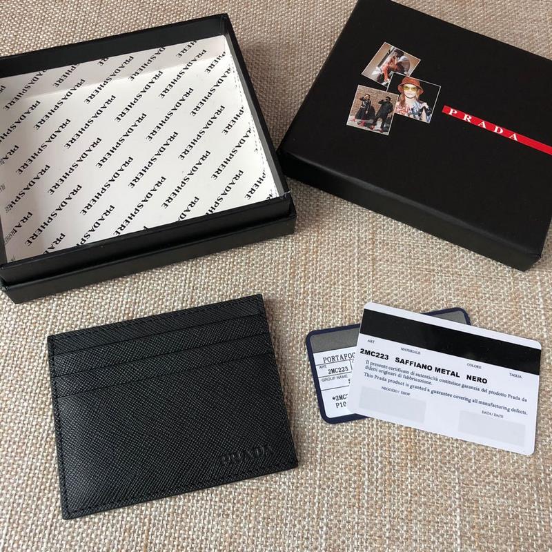 Tarjetero Prada de piel saffiano 2MC223 de primera calidad y diseño minimalista.