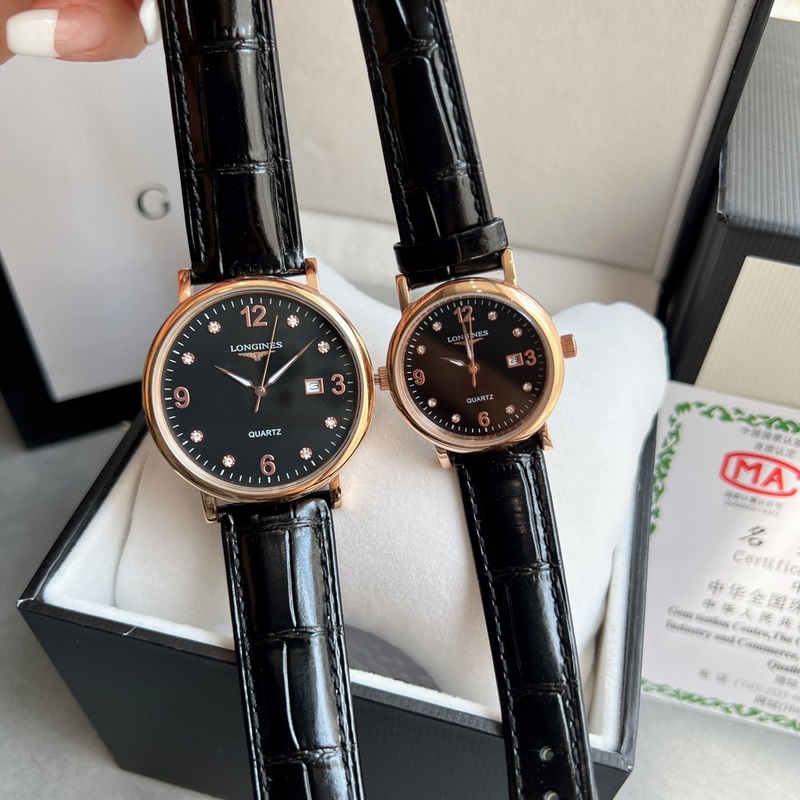 Réplica de reloj de cuarzo Longines para parejas, original, importado, cristal templado, 3 ATM