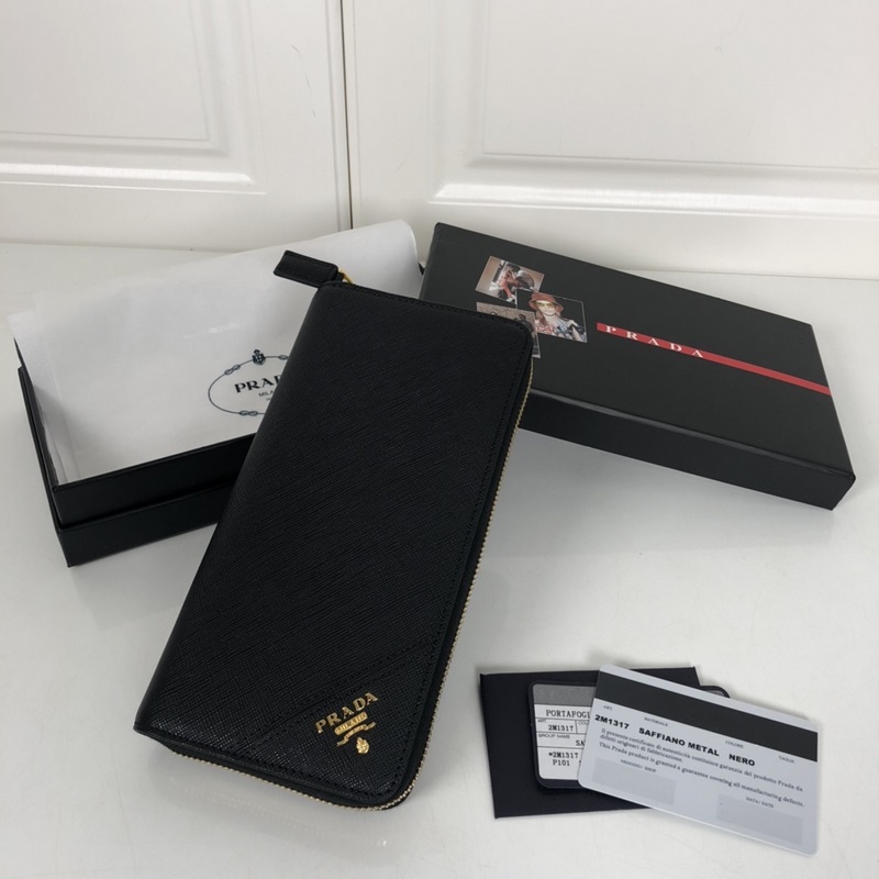 Cartera corta Prada para hombre 2M0513 de piel saffiano negra