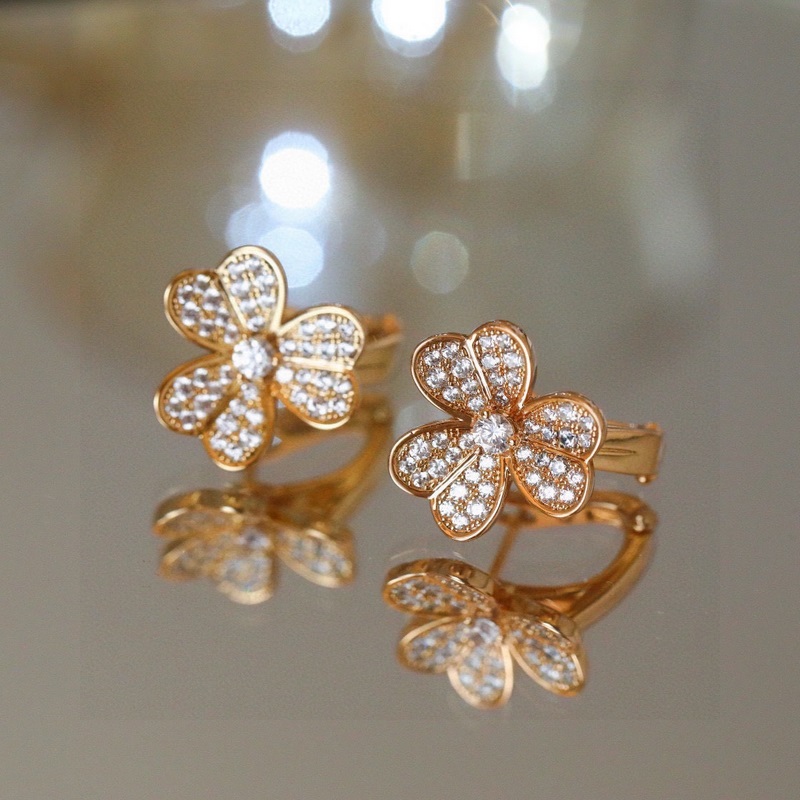Pendientes de tres flores con diamantes de alta gama y trébol de cuatro hojas VCA, calidad 1:1