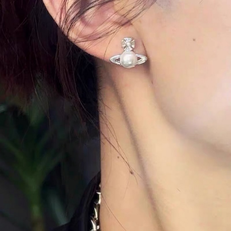 Pendientes Saturno de Perla con Incrustaciones de Diamantes de Vivienne Westwood