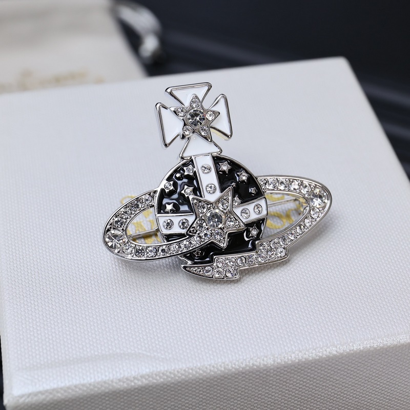 Hermoso broche grande de Saturno con incrustaciones de diamantes de West Taihou
