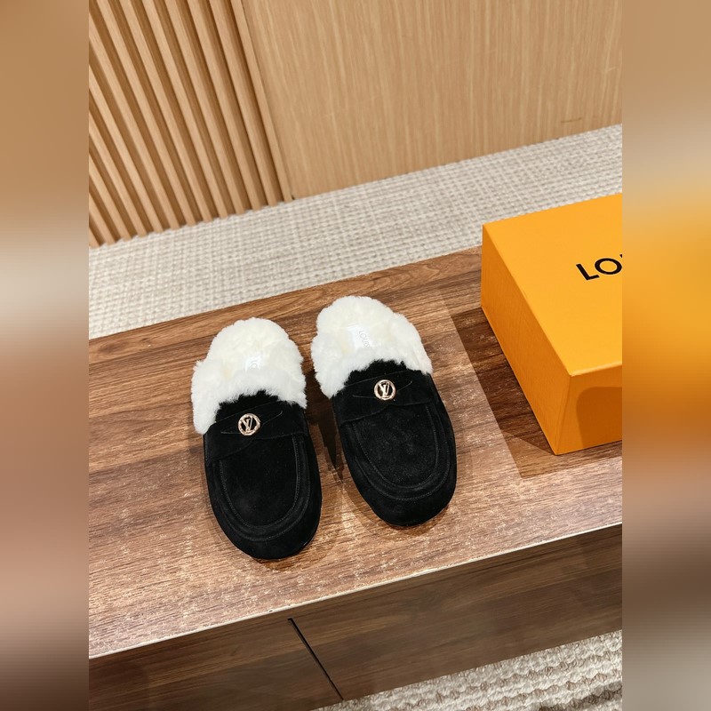 Zapatillas tipo mule bokken de lana para otoño e invierno de Louis Vuitton. Material de gamuza. Suela de cuero genuino.