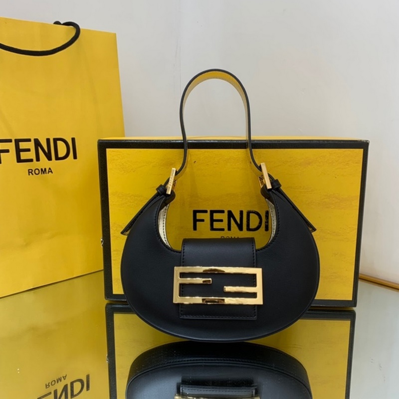 Bolso réplica FENDI Mini Moon de piel negra de alta calidad