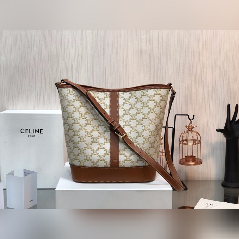 Bolso cubo mediano de lona blanca CELINE TRIOMPHE
