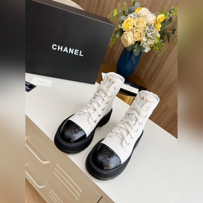 Botines Chanel otoño-invierno con detalle de logotipo y diseño con cordones