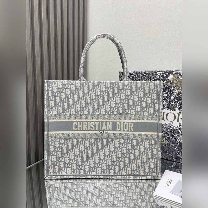 Bolsa de compras grande gris con monograma clásico de alta calidad
