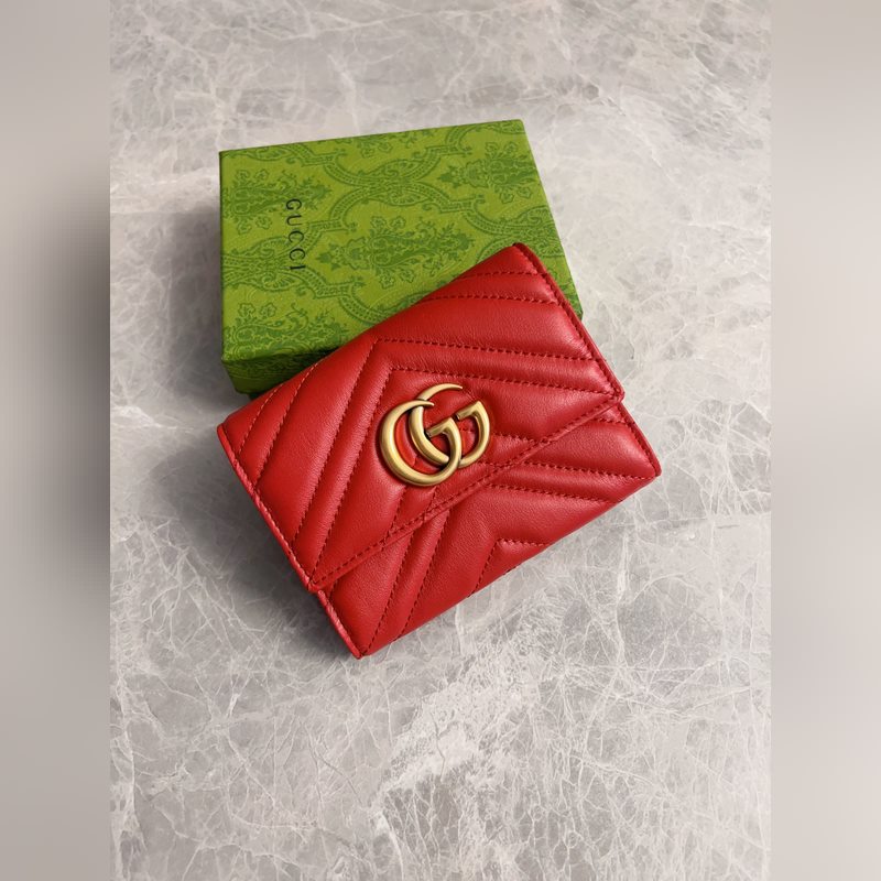 Cartera plegable GUCCI Doble G de metal bronce con estampado de ondas bordado en cuero premium